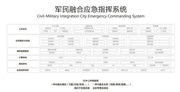 一体化资源融合:综合空间态势,,,,,卫星雷达声纳、气象信息、敌我装备、视频指挥、舆情、展望的一体化系统,,,,,盘算机、移动终端多方法泛起,,,,,实现全要素资源信息的周全获取,,,,,融合处置惩罚、统一分发和按需展示。。。。。